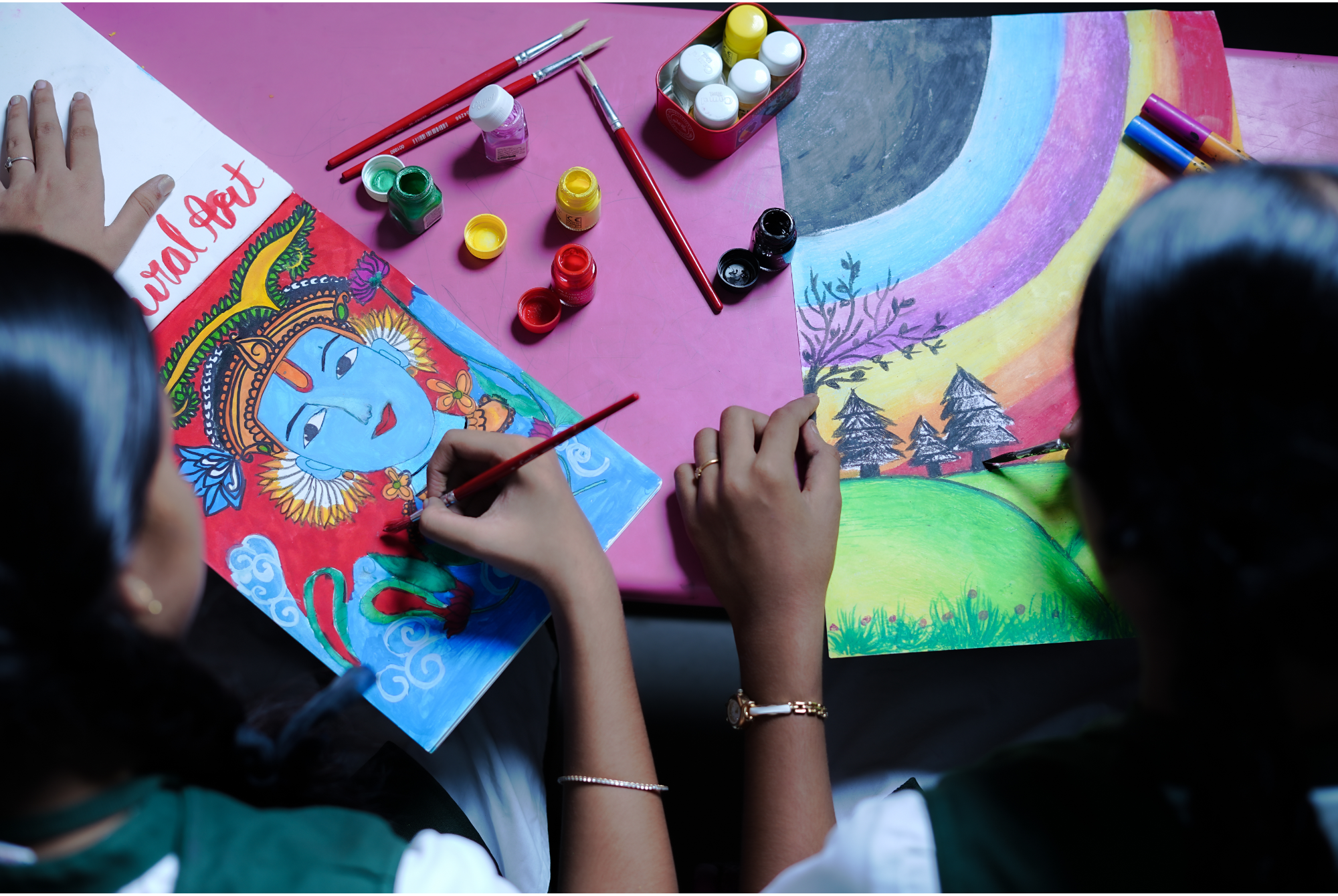 To create a space for the children to express themselves and also to grow as an individual, the arts and craft club engages and encourages students to bring out their aesthetic learning in form of colours. With a clear understanding that art is not confined to one singular domain, the club includes various forms of creative expressions like Calligraphy, Tanjore painting, Mandala art, and Embroidery. It is a space where students explore, experiment and come up with new ideas of expression.